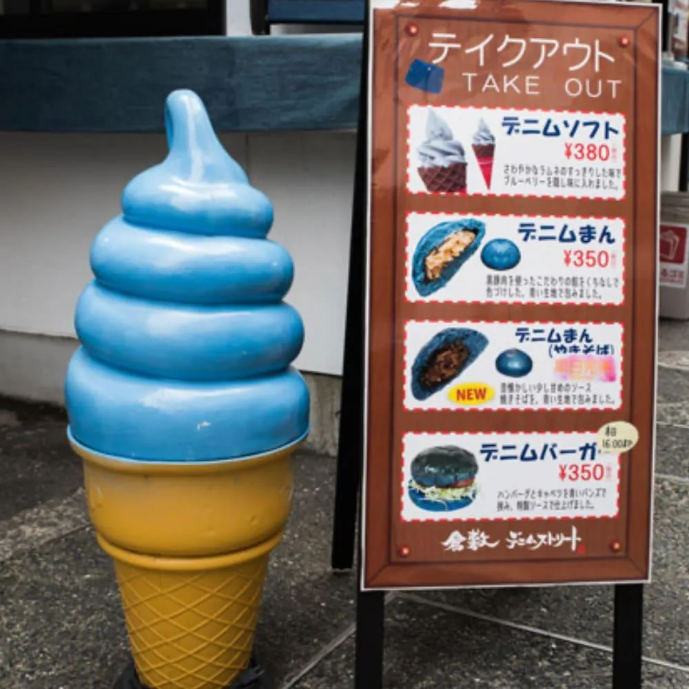 Today it’s known as the ”Fibers and Textiles Kojima Festival” and the ”Fibers and Textiles Kojima Seto-ohashi Festival” and held in the Spring in the area in front of the Kojima train station, in the Autumn at the Kojima Boat Race Track. You’ll find flea markets and stalls selling denim related products with the possibility of some discounted Japanese Jeans and products. There’s also local food stands and the chance to sample some indigo coloured food and drink.